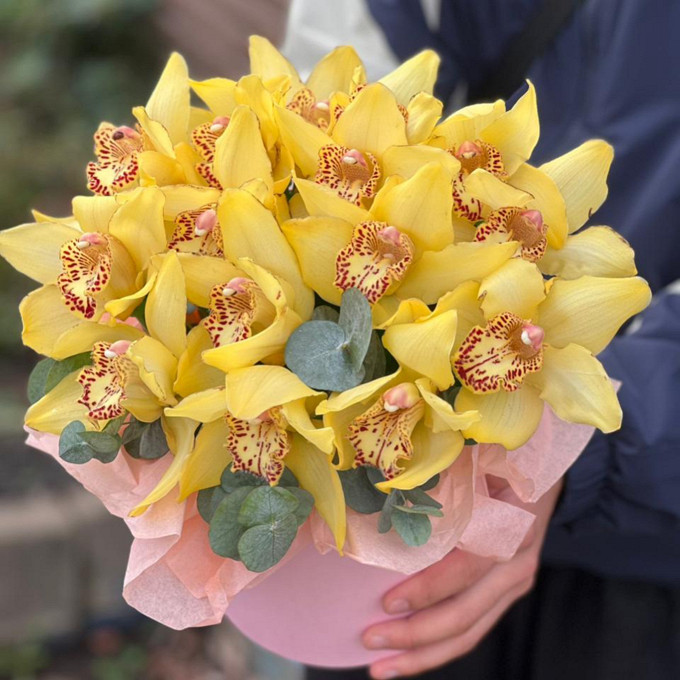 Желтые орхидеи в коробке
