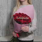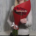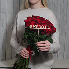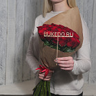 Красные розы Кения, 50 см в зелёной матовой плёнке в Москве