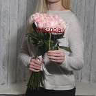 Нежно-розовые розы Кения, 50 см в чёрной матовой плёнке в Москве
