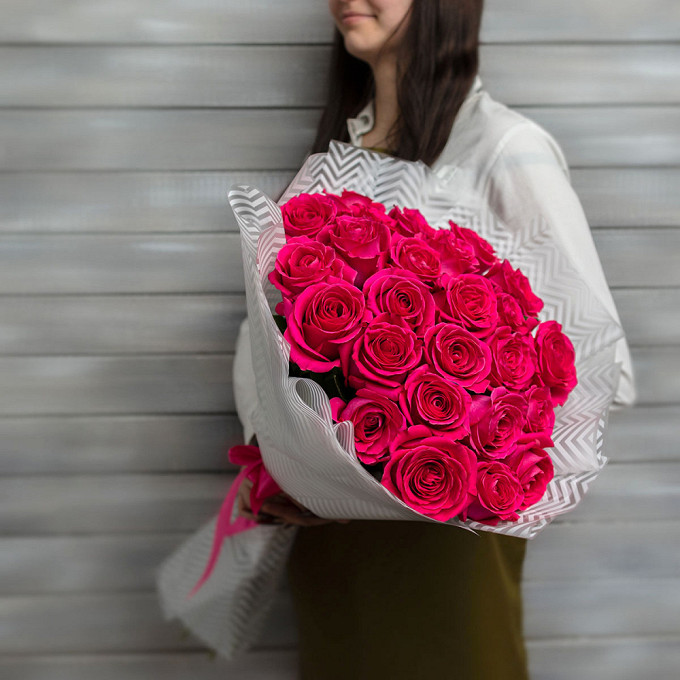 Роза эквадор (ярко-розовый) 50 см — 25, лента атласная — 1, плёнка матовая — 1