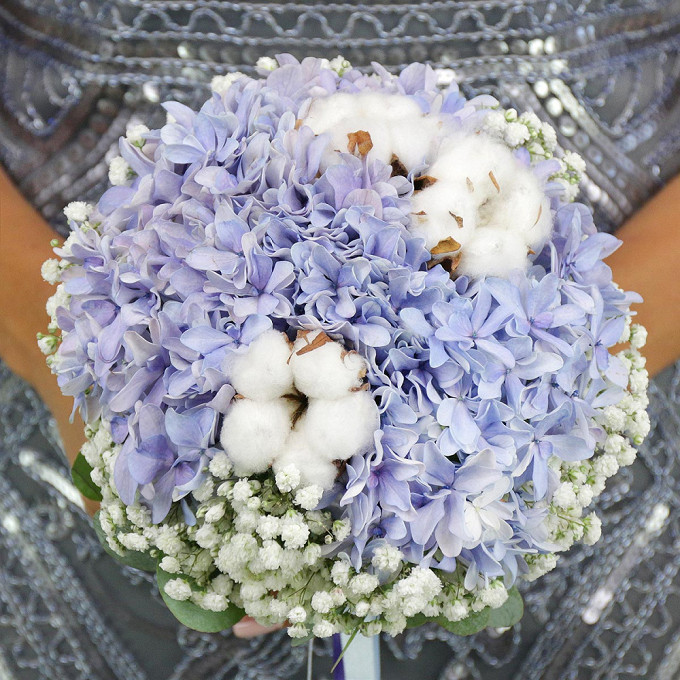 / Букет из гортензии, хлопка и гипсофил
