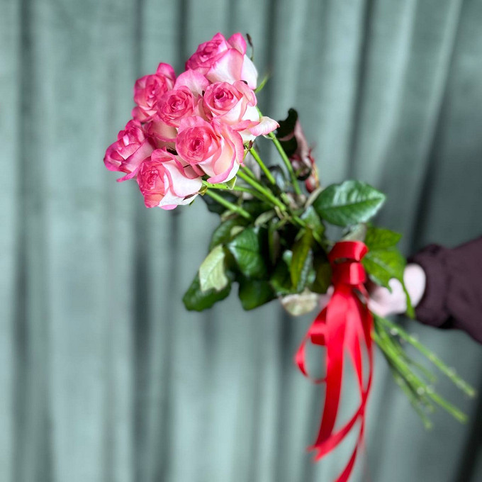 Роза джумилия (нежно-розовый) 60 см — 7, лента атласная — 1