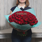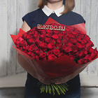 Красные розы Кения, 40 см в белой матовой плёнке в Москве