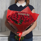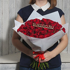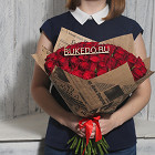 Красные розы Кения, 40 см в белой матовой плёнке в Москве